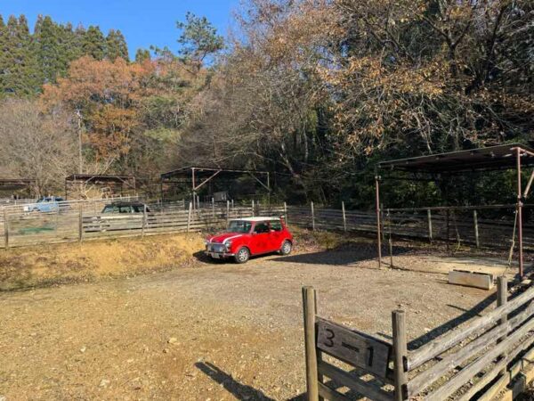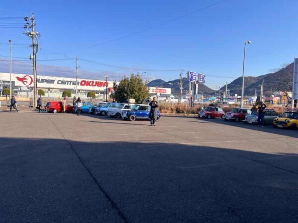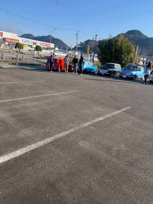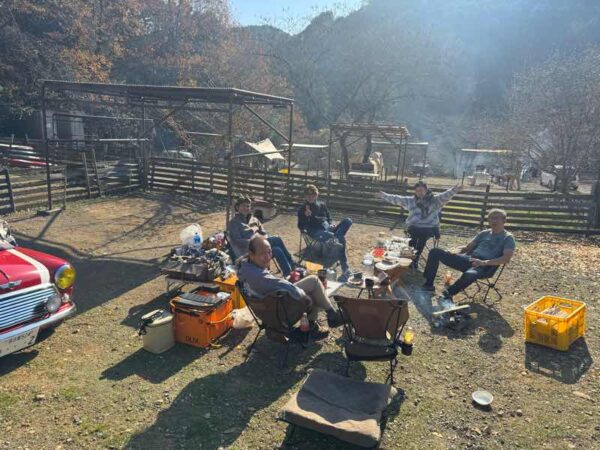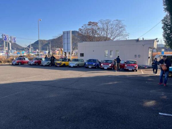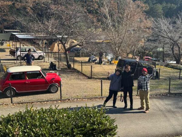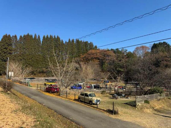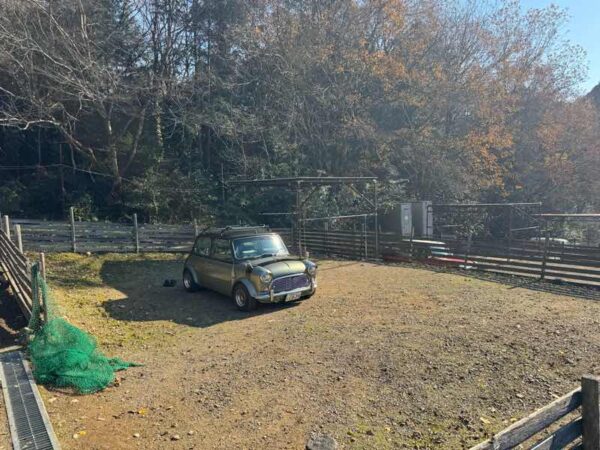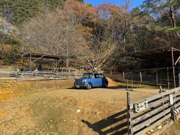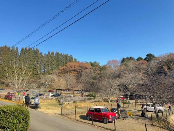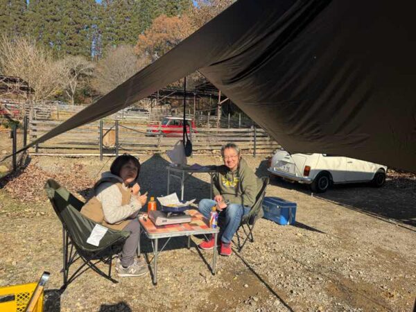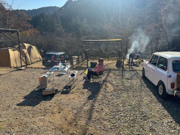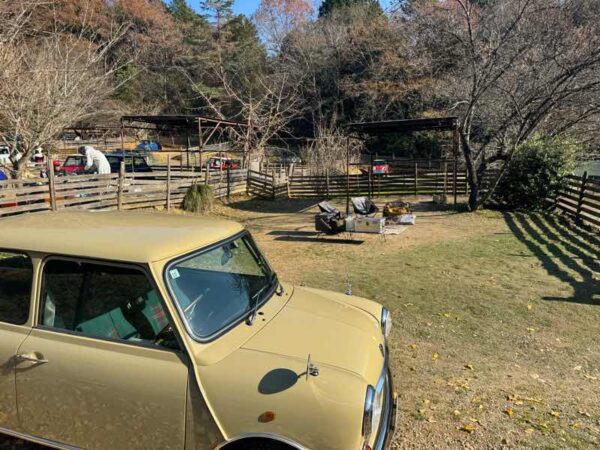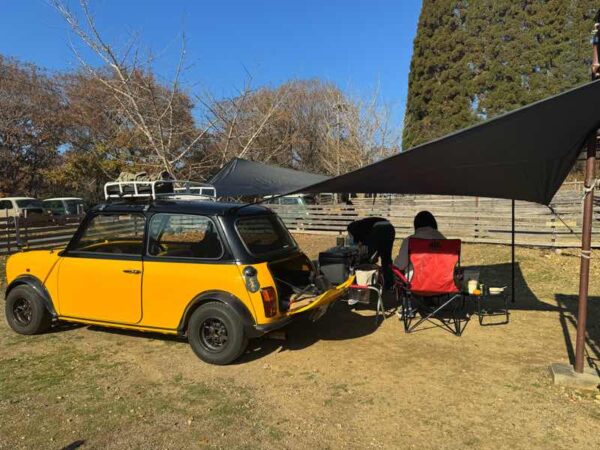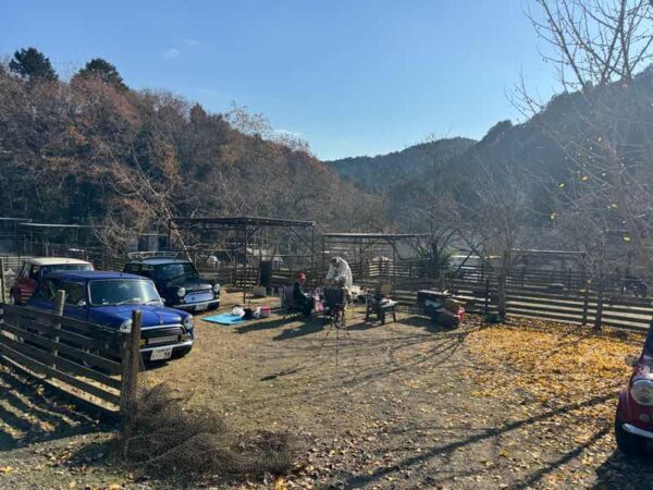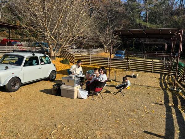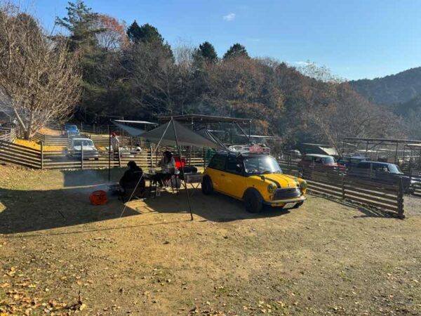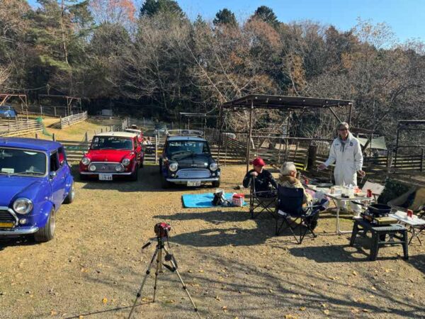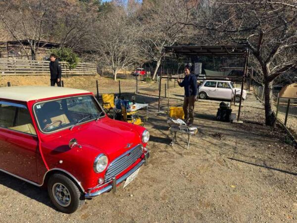 ミニを横に置いて、自然の中で食べるご飯は、もう格別。