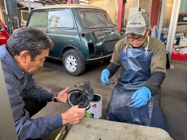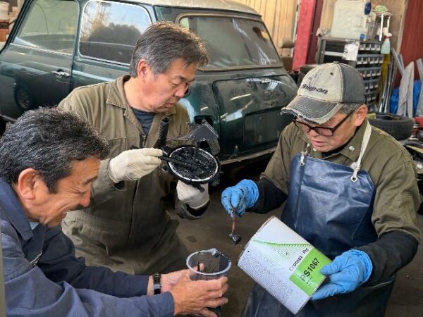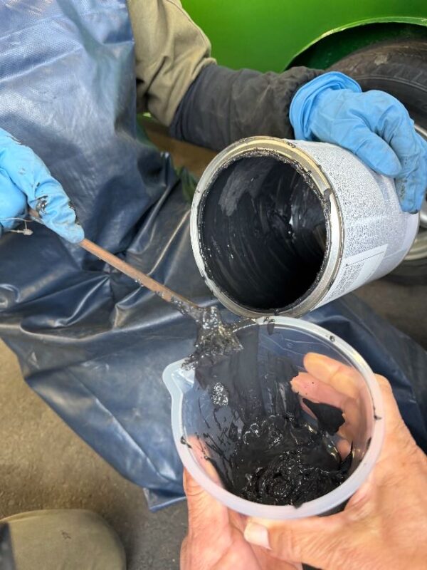 その話を聞いていた、くにさんとEPLの川道さんが容器から塗料を一緒にこそいでくれて、