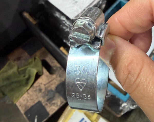 それは ホースクランプ(ホースバンド) に刻まれた小さなハート。