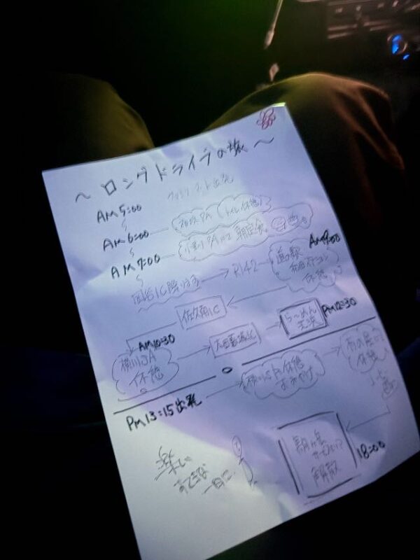 車内では髭を剃り始め、化粧水や乳液をつける女子力高いBossを横目に、、笑