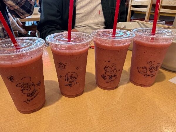 店長からでーすって言いながらスタッフさんが持ってきてくれたのは特製のスムージー。