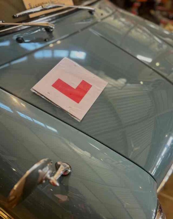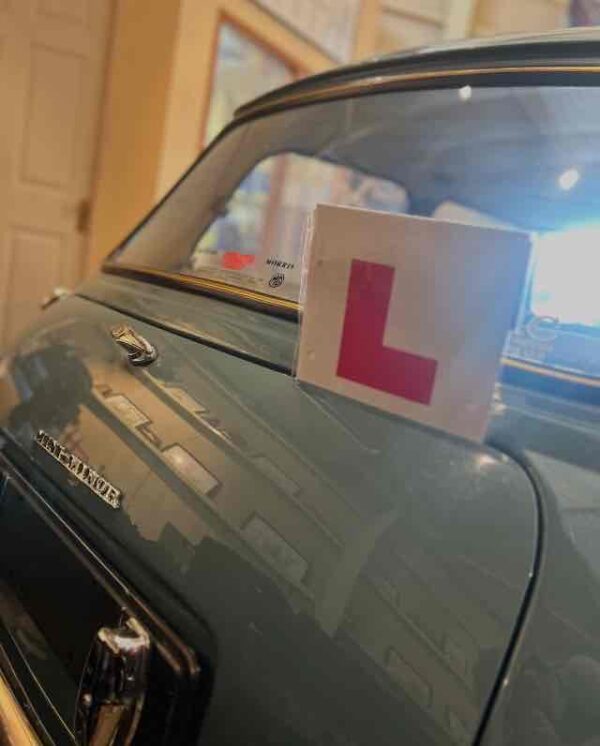 これは「運転練習中のドライバー(Learner driver)」であることを示す標識です。