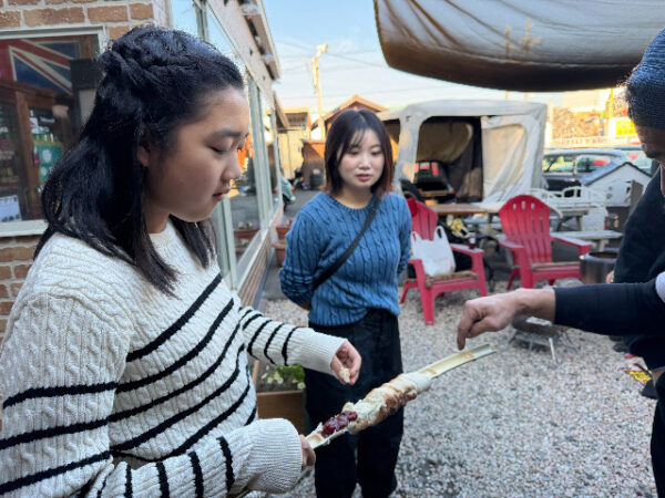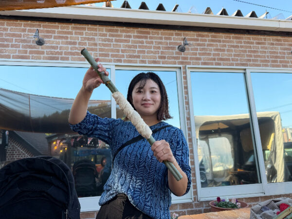 竹に巻きつけたパンをみんなに振舞ってくれました♪
