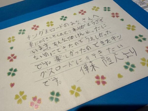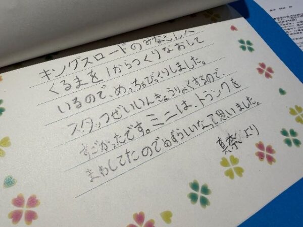 たくさんの体験をしていかれ、笑顔いっぱいの日でしたが、本日お礼のメッセージが届きました(o^^o)