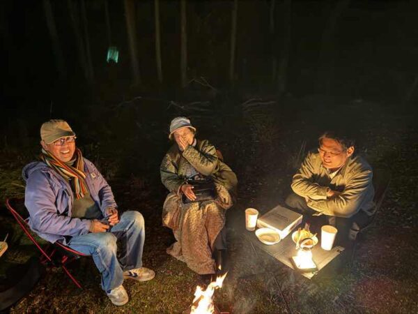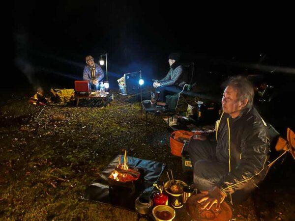 3時間焚き火を眺めていると、、熾火の遠赤外線効果でより一層体も心も暖まります!