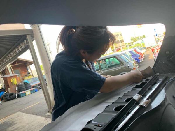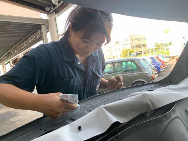入社当初は洗車作業やレジ業務から始まり、車のバラシ、ルーフ張り替え、ガラス脱着、ガラスコーティング、更にはフレームや部品の清掃まで!!
